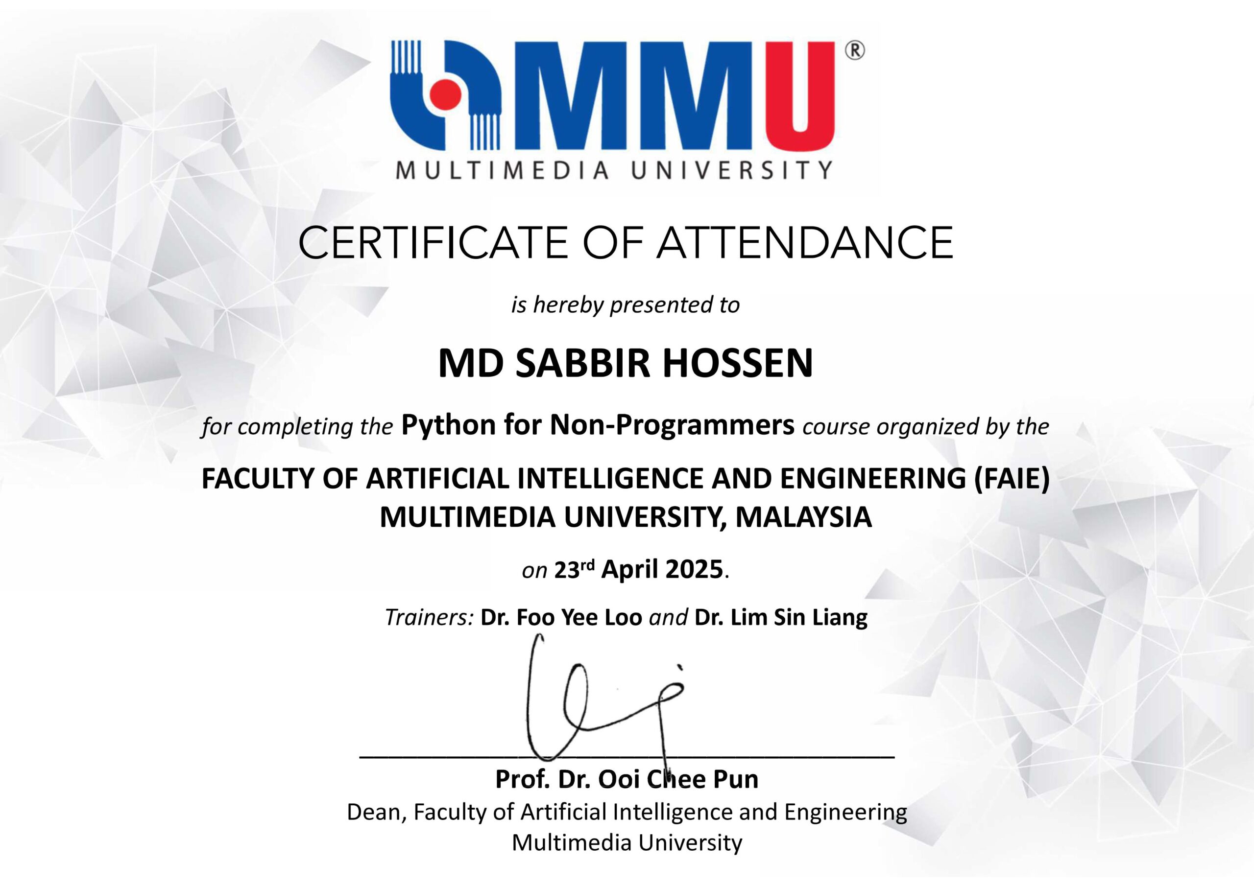 I hold a strong academic background in Computer Science and Artificial Intelligence, complemented by industry experience in software development, IoT integration, and data-driven system design. My current postgraduate research at MMU Malaysia has equipped me with expertise in the intersection of AI, Smart Grids, and Green Energy Systems, fostering skills in applied research, model development, and sustainable innovation.